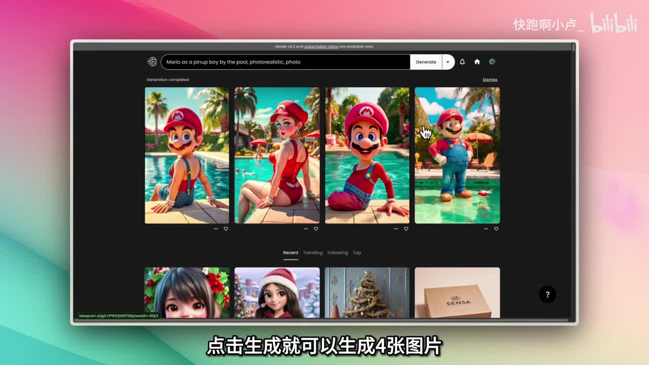 我们进入到网站后,这里的左边按钮是图片检索,包含了海量设计师的无水印图片,右边则是图片生成。我们输入我们的提示词,点击生成即可,根本不需要多余的操作,一次会生成四张图片。