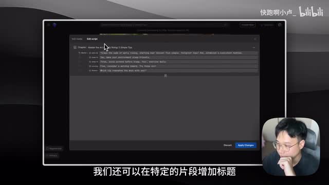 然后我们在。编辑script这里script我们还可以在特定的片段增加标题,比如说我们可以修改这个。第一个的大标题。