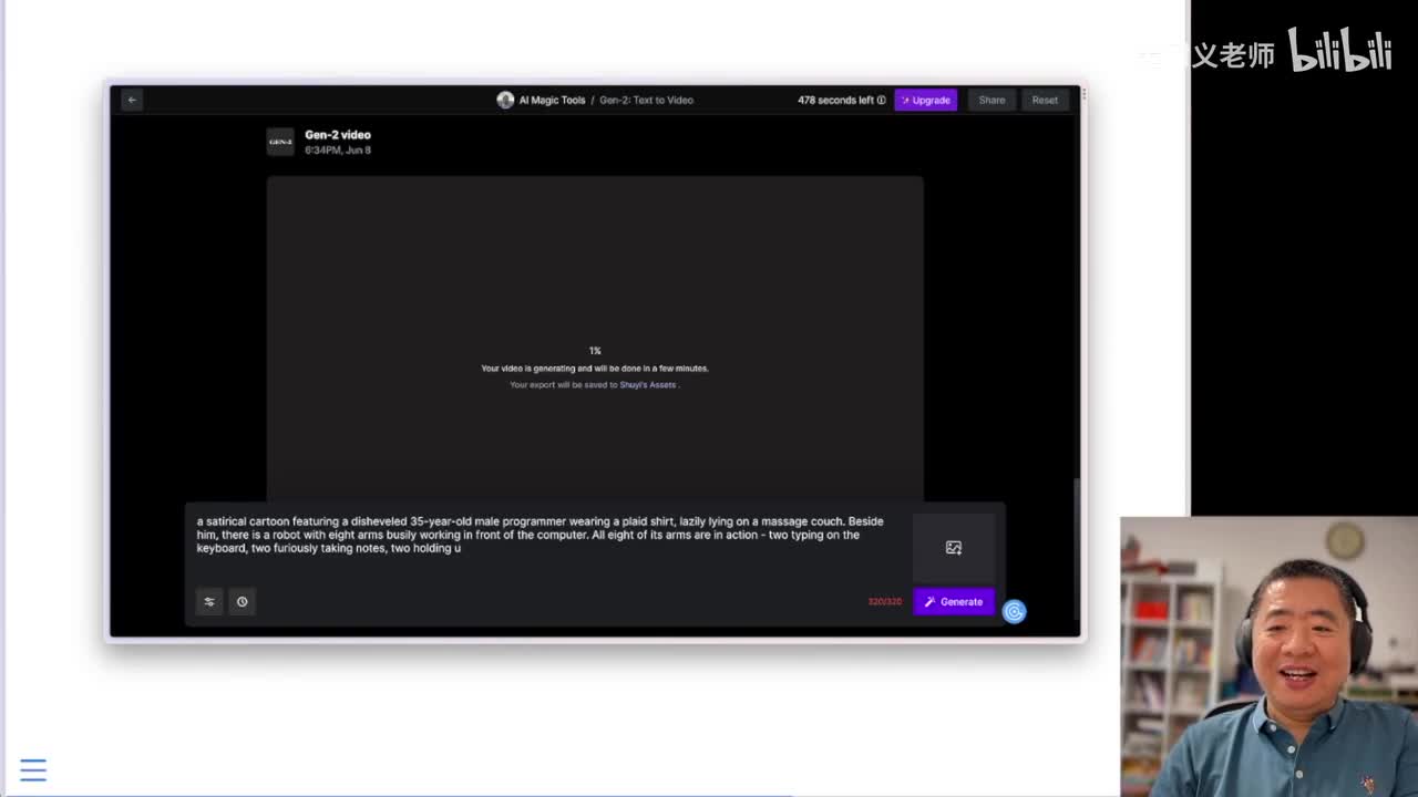 是被截断,但是这回我也不管了,我就直接让他给我生成,呃,中间过程咱们就省略吧。呃生成的效果呢大概是这个样子。呃,你说它是不是视频有没有在动?说是也有啊,但是看着真是觉得很别扭啊。