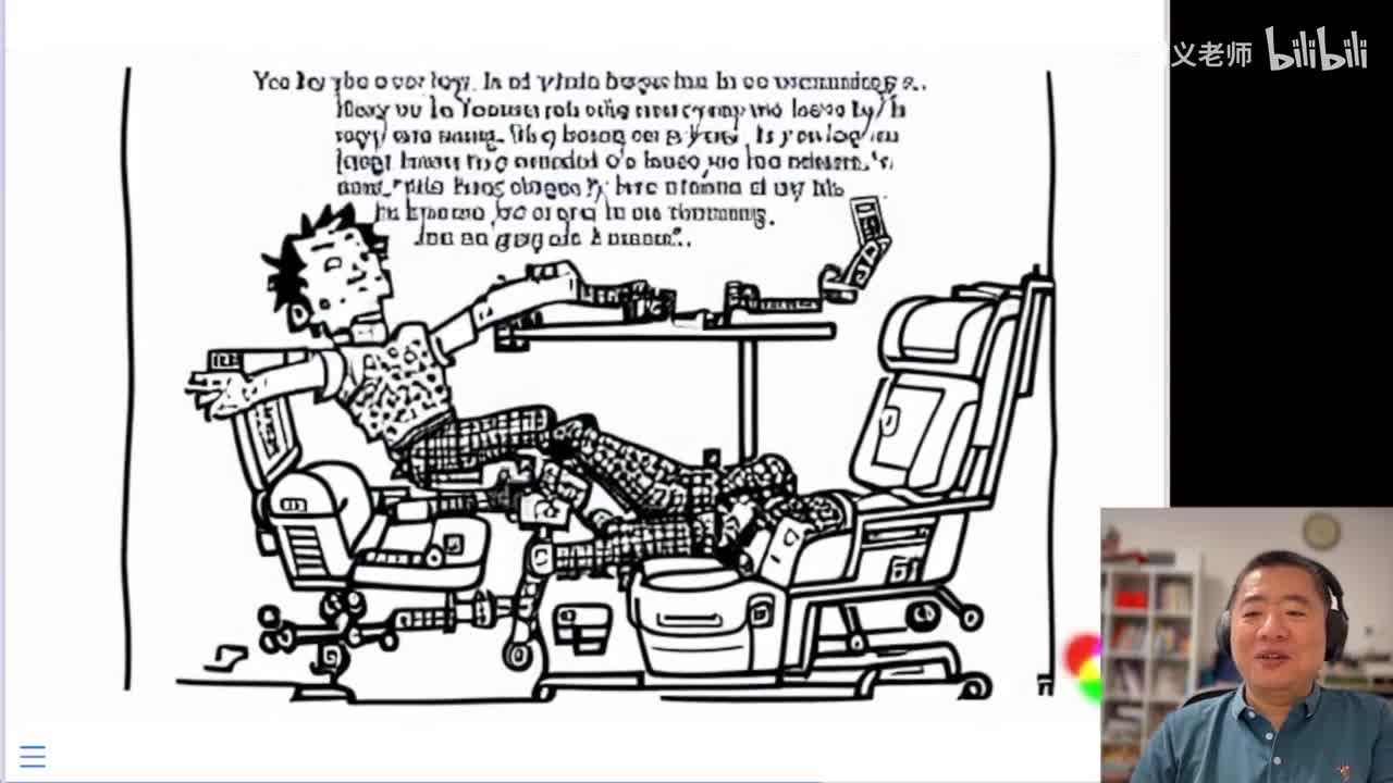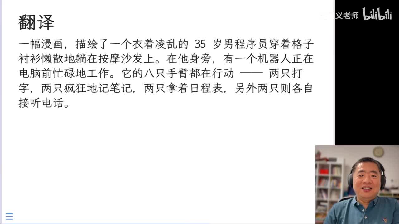 那么下面我就再尝试一个,不死心呐对吧?哎,这张图嗯我是我之前这个画的,那么这个图呢里面也有很长的提示词,我们把它拿下来呃,翻译过来呢就是一个衣着凌乱的三十五岁男程序员,穿着格子衫等等等等。哎,真正工作的呢是机器人啊,这个表明的是一个什么事儿,相信大家也能够猜到。那么我们下面就看啊,把它扔进去,老样子啊还是。