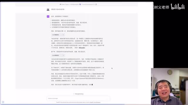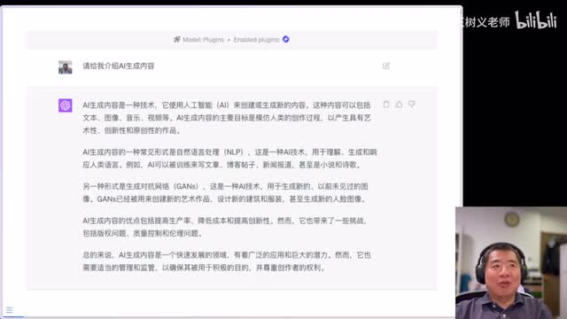 哎,另一种形式生成对抗网络,然后这个是人脸图像,优点是什么?然后挑战对吧?总的来。说然后怎么怎么样,看到这儿你有一个什么感觉呢?这就是很多人对chat g p t的诟病,认为他的回答呀就是四平八稳,言之无物啊。除了一开始给你解释一个东西,可能这个解释啊呃有的时候还算是靠谱啊,但是更多的时候,实际上你让他去给你介绍的东西里面,他没有任何的细节啊,基本上都是一些比较空泛。那么很多人对这就不满意。那我们来看看啊,稍加调整之后,唉,这里面你会发现只有这处啊有一个啊一个新的东西。我的提示词是完全一样的,用的插件儿跟刚才也一样。
