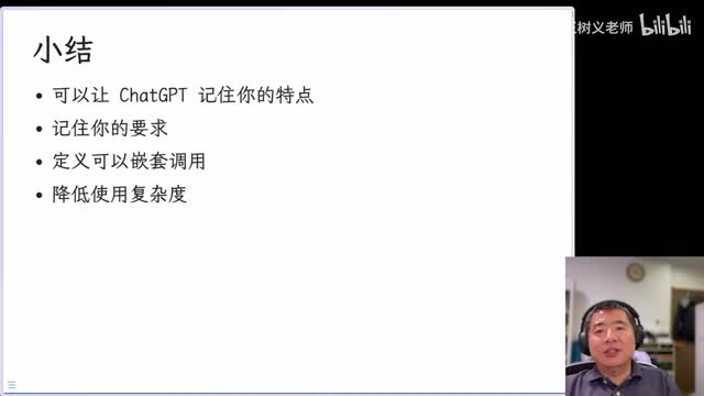 我们来小结一下啊,今天给你介绍了open ai推出的新的这样的一个设定,叫做custom instruction。那么它可以让chat g p t记住你的特点,哎,记住你的输出要求,可以嵌套的调用。还记得刚才那个介绍和前面那几个。啊,预定义的这样的一个类似函数的东西,当然都是自然语言啊,别害怕哎,可以嵌套调用,这样可以降低你使用的复杂度。在这以前我往往需要真正的去定义一些呃红,然后呢拿这些这个像keyboard miss o o定义一些这个快捷键,然后每一次去输入麻烦不说啊,主要是这样的东西,每一次你去里面放一大堆对你输入的内容啊,其中的主干部分有的时候会造成一些干扰。但是现在有了它写起来prompt越来越简洁,对吧?