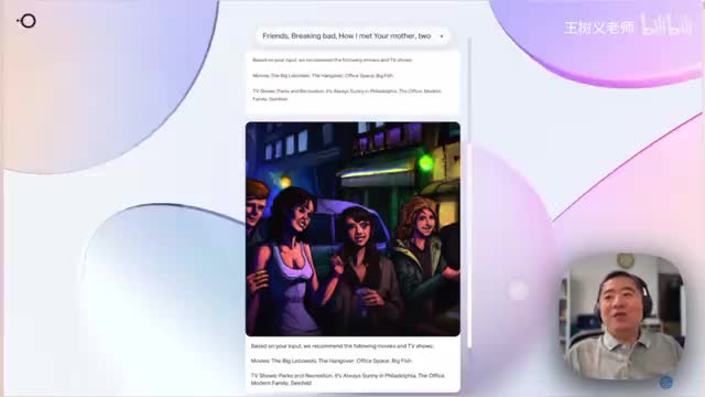 哎,how i met. your another, 对吧?呃,然后two men and a hand。然后south pot哎,这些假如说是呃一个人他喜欢的作品,然后下面我们来回车。哎,他就根据这些输入,哎,他说哎根据你喜欢这些,我们推荐下面这些啊。哎这个第一个我不认识啊,宿醉啊,然后是office face big fish。