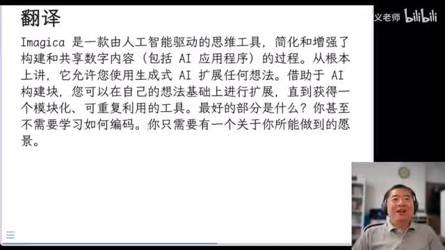 哎,借助于a i构建块,哎,你可以在自己的想法基础上进行扩展,哎,这个实际上就是我有一个想法,我要把它变成一个原型系统,基本上就是这个样子。这里面专门提到了不需要学习如何编码,就不用编程对吧?只需要一个关于你能做到的愿景。哎呀,这个听起来非常的这个吸引人啊,然后他说我是怎么来这个做到的呢?这里是他说的,哎,这里呢我也进行了翻译。他说像我们的思维的发展,因为。