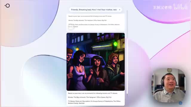 input就是根据用户哎哎他现在输入,那么你给他推荐更多的影视作品,这其实就是一个影视的推荐引擎该该干的事儿。然后我们开车。他就开始进行这个人工智能的处理了。哇,你看他已经推荐出了不少东西啊,这里面我认识的啊阿凡达对吧?然后呢国王的演讲、辛德勒的名单啊,教父,这是角道士啊,这是盖茨比啊,然后啊勇敢的心啊。