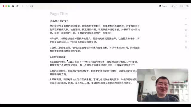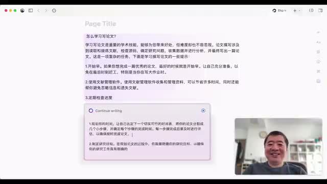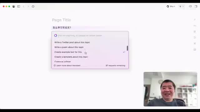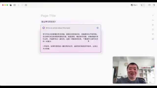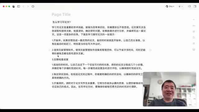 你只要是把craft升级到最新版本,一打开就可以来使用这个功能。下面呢我们来给你简单演示一下啊,现在呢我们就进入了craft的界面啊,然后我们在这里呢首先先写一个提示句或者叫主题句。我们现在呢来写下一个主题句,比如说啊怎么啊学习写论文啊,然后我们弄一个这个问号好了,这个右边这儿有三个点儿,我们来点一下啊。