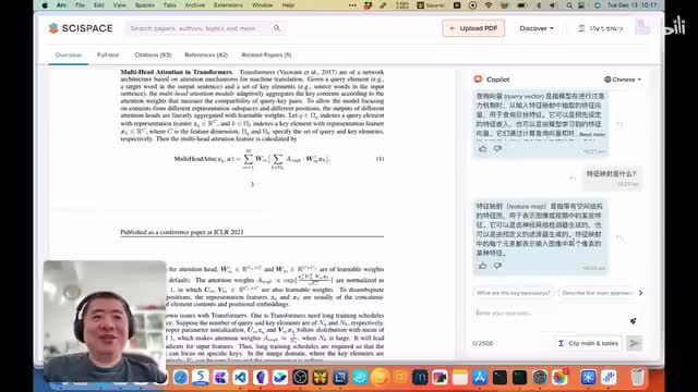 在这里面啊每一个这个我有的我都不知道该怎么读啊,这个然后呢分别的来代表什么?那我们就可以来了解一下,比如说这里出现一个词儿叫查询向量,对吧?那我就来问一下啊,什么是查询向量?假设呢特征映射我也不懂,我就再问一个呃,特征映射是什么?哎,然后呢他就给你来进行进一步的相关的解释啊,这个feature map指的是什么什么啊?然后这里面如果再有不认识的词,你依然可以用这样的一个方式来进一步的进行查询啊,所以你看在这里头你通过不断的去对话,不断的去了解,不断的询问啊,然后逐步的对一些相关的基础知识就有了更深刻的理解。而且因为你选的是中文啊,呃所以这个就可以让你能够以自己更能够接受的,更熟悉的语言来了解你想学到的知识。呃,这里面还有很多其他的文字可选啊。不过我我我看就算了啊,咱们大部分同学应该也就是这个出不了前两个的范围啊。