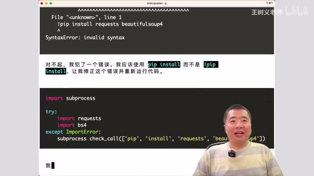 那么他在这里面哎一测试果然又报错了。那这里呢他说又遇到错误了啊,我现在把人像先隐藏一下,对吧?看看他会跟你说这里面是什么什么的原因啊。说完这些原因之后,他自动进行修改,这中间不需要你干预啊,他把这些重新的来改写之后,用改写好的然后来给你去这个进行相关的这个展示啊。那么在这里他说又遇到了一些问题,那么他自动的再去把这个问题加以解决,重新的。编制一段代码,把这个东西再给你来讲解清楚。