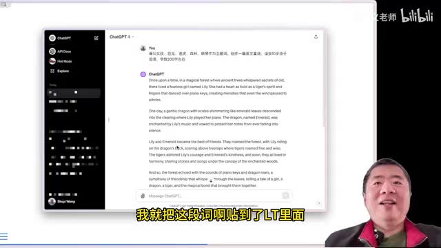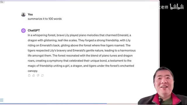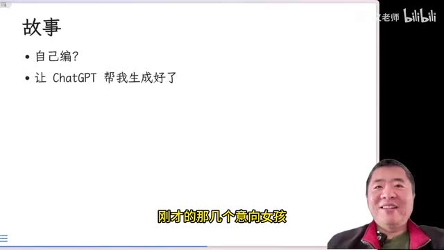那么我们来小结一下啊,现在你只需要用简单的提示词作为一个输入,就像刚才我提到的那五个单词作为一个印象。然后就可以让chat g p t给我们生成一个完整的故事。有了这个故事,我们再让老天给我们加上动画和解说,哎,于是一个个性化的视频就诞生了。