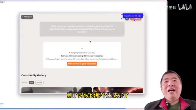 然后我就把这一段给它贴了进去,然后让他去给我执行。那么这个时候执行,他就开始给我在这生成。因为现在在试用的人很多,所以啊生成一段视频大概需要半个小时左右。