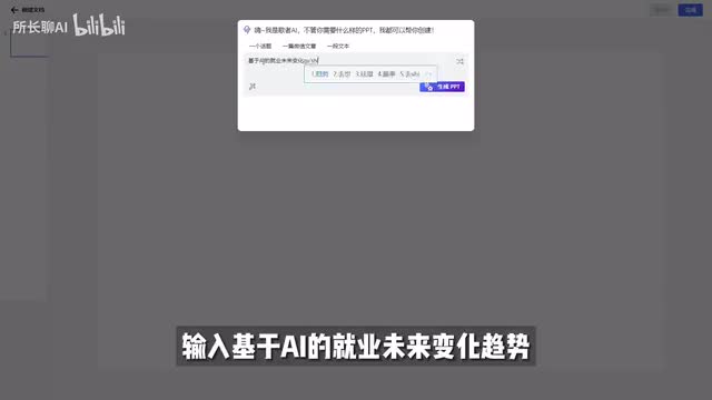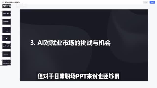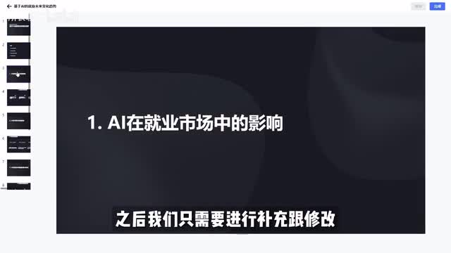 那么咱们就来试一试,输入基于a i的就业未来变化趋势,等待一段时间可以生成效果。