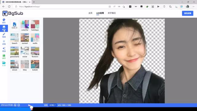 可以看到它的抠图效果还是非常好的,发丝也抠的很自然,最好用的还是它能够对抠图结果进行二次调整、复原或者擦除。更换背景色,上传自定义背景等等,谁用了都会爱上。第二个一帧秒创。