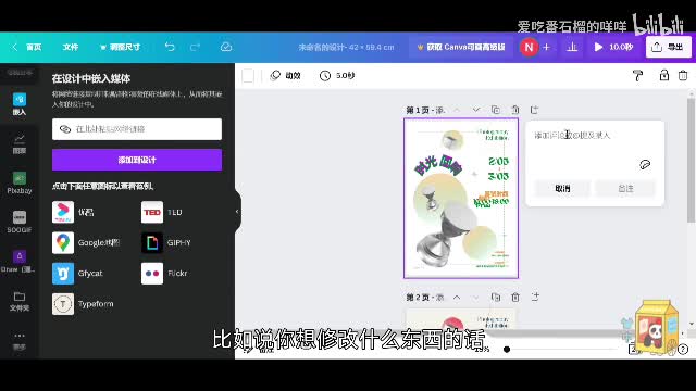 同时我们可以为海豹增加一些动图,它这边都是有很多的那种娱乐的动图吧,就点一下就可以放上去。还有庆祝一些媒体的视频,比如说我们点一个t e d的视频。他就会放上一个t e d视频上去。也可以,它也会,你点一下这个播放按钮,它也是会自己播放的。然后同时你也可以在这边粘贴你想要的视频链接放上去。