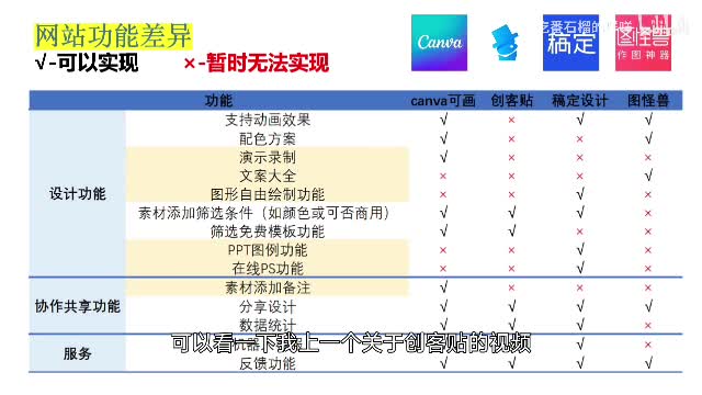 今天给大家分享四个我自己经常使用而且简单易上手的在线设计网站。直接在浏览器上搜索他们的名称,选择官网就可以进入进行设计。同时他们也有自己的a p p和微信小程序。下面是我自己整理出来的一张功能图表。