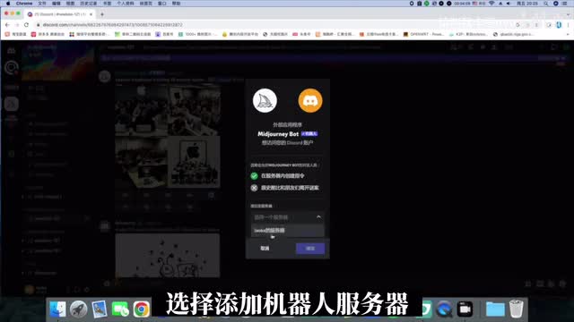 接下来选择网页左侧的新区,就是视频左侧的幺二幺幺五幺之类的,随便加入新区再点击。made journey b o t选择添加机器人服务器,选择我们刚才创建的服务器,点击授权,点击网页左侧创建的服务器,在下方选择加号,添加一张我们想要设计的图片。