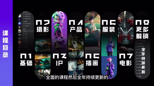 我们也推出了一个全新的课程,就是针对基础啊摄影、i p呃产品、插画、服装、电影,还有美术、舞台装置这一些呃做一个按呃课程吧全面的课程。然后全年持续更新的会根据学员的一些需求,比如我就想要电商那一些,然后针对性去更新。呃,整个课程的话嗯是最近月底的话会开课,嗯,大家有兴趣的话可以去报名。