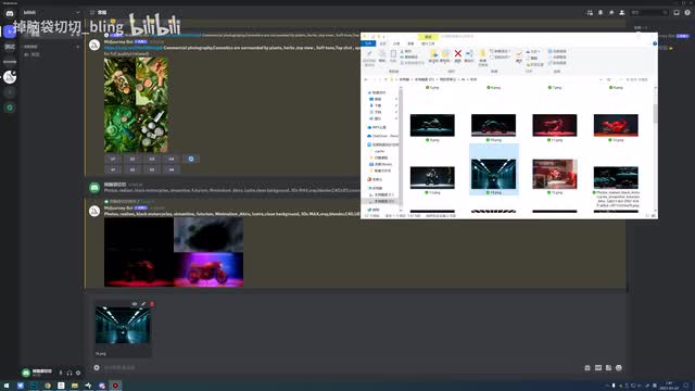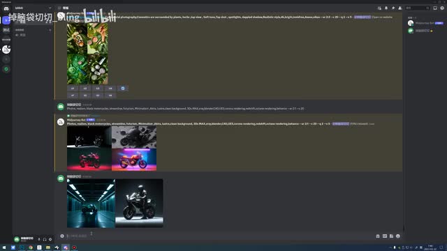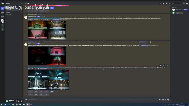 然后把这张图重新垫给他,再输入一样的关键词啊,或者是加上一个人骑摩托车的关键词。啊,再去给它生成这样的好处是它可以生成很多个跟这个哎跟这个风格接近的这种图片。就是这样暗这个青色的这种场景,暗色调,然后这种很酷的这种感觉,它可以生成很多这种风格相似的。所以我们有的时候呃就是在想,作为一套的这种风格比较接近,其实就是你要有这种图片才行,你不能只输入一个摩托车啊。啊,其实这个如果你想做类似风格的图,其实我们有很多种办法啊,那只能是遇到案例再给大家去讲啊,因为这个里边其实就是我们平时自己要去调整一些细节。多去尝试吧,我觉得这个东西。嗯。