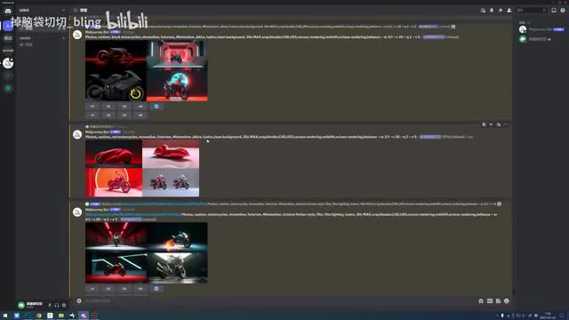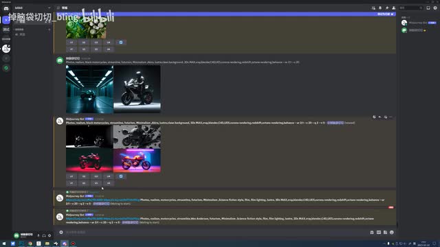 颜色还有它一些这个造型的,所以我在前面输入了这个照片啊写实啊,照片现实主义,这是他翻译的啊,照片写实这样这两个词会让他的这个真实感比较强烈。然后呢这是黑色摩托车,那我这里边可以把它删掉啊,就摩托车。啊,或者是如果我想要非常想要那个阿基拉那个颜色,我就输入红色摩托车也可以。那这个里边我们不输入,我们就是摩托车给他一些发挥空间。然后流线型啊,因为我想要那种线条感很明显的,然后我加了一个词啊叫未来主义。啊,呃因为为我想我希望这个。他给我产生那种汽车是比较酷的那种,然后又简约又有流线型。