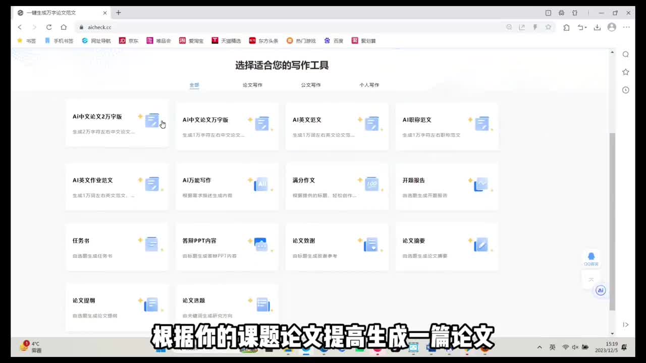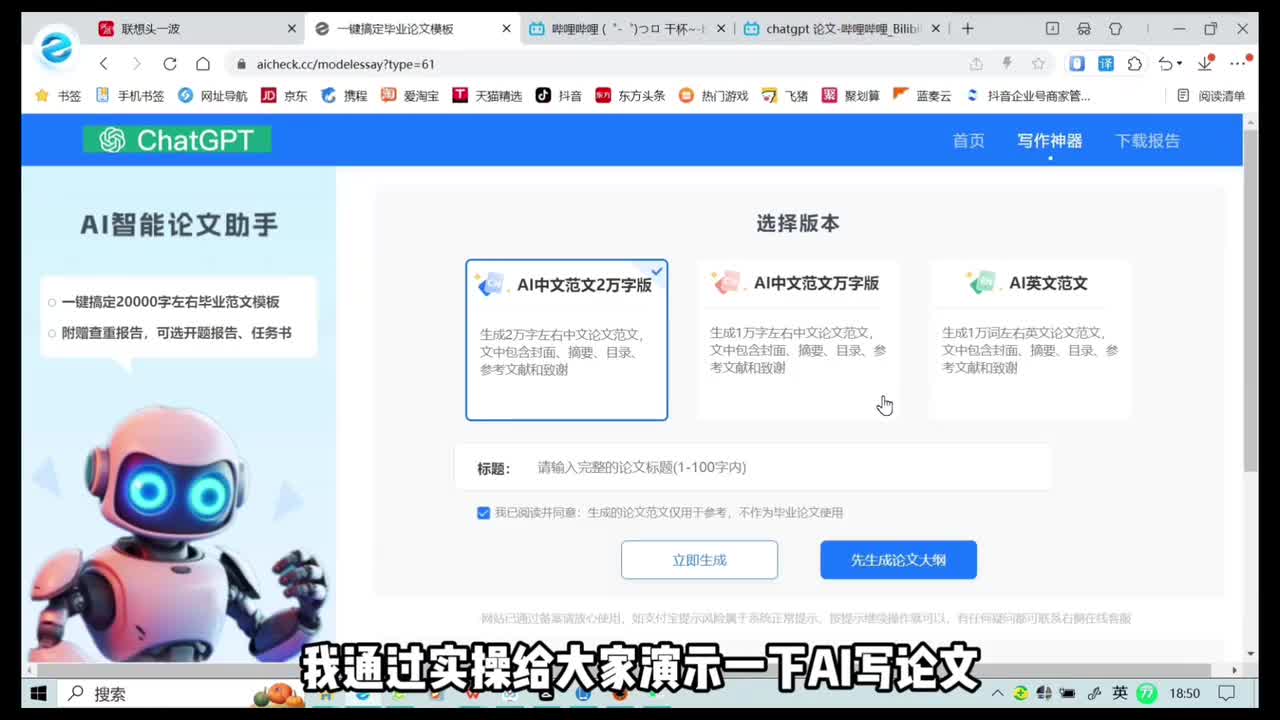那么还有像指令式的,会根据你的要求去写一篇论文,一键生成。根据你的课题论文提纲生成一篇论文。这类的呢我也试过挺多的,感觉呢会比对话式的更加便利。