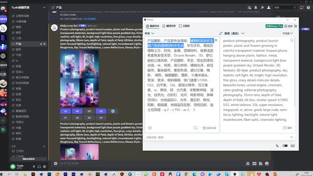 然后你们主要改的话,其实我这个也是参考别人的。然后我主要改嗯原来的那个词,它是比较单一的,我感觉不够丰富。我就直接在这个地方,像植物啊、花朵这一些在什么一个环境上生长,然后材质上你可以自己去写上。然后主体物的话,在这里就是可以改成笔记本啊、耳机啊,音响啊,都是可以的。