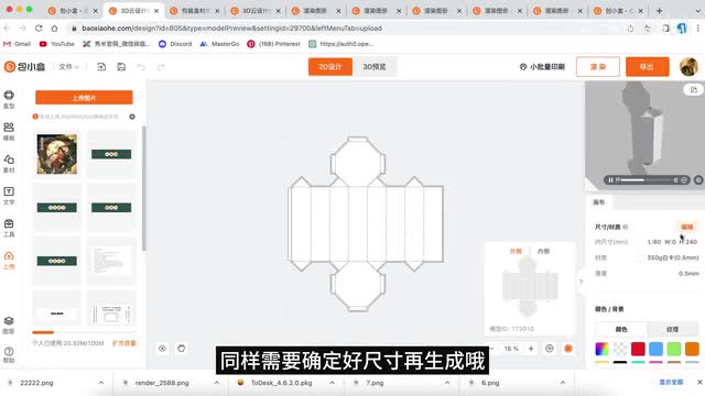 然后我们再来对比一下修改前和修改后的差别。之后我们再把其他的包装内容补齐,把每一面的内容都拖入到包小盒里进行排版。这是整体的效果。包小盒里也可以进行渲染,点击右上角的渲染,可以挑选包小盒里预设好的场景。