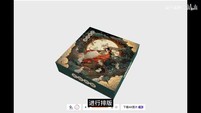 第二个方向是生成元素,然后拼接运用到包装设计中。如图,只生成了所需的荷花元素,拼接到了设计中。我们先来讲第一个方向,生成一整张图片。图片的画幅需要提前确定好,这里我使用了包小盒这个做包装的网站为大家进行演示。