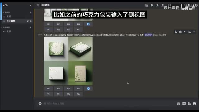而在生成茶叶包装时,发现m g还能同时生成几个盒子在一张图里的情况,这时我们就可以限定上数量。比如一盒茶叶包装设计生成的图片里也只有一盒,但是m j里也有局限,就是控图还不能很准确。比如之前的巧克力包装输入了测试图,但四张图片中只出现了一张伪测试图的,此时我们就可以电图来增加控图的精确性。在之前的关于m j生成i p三视图的视频中,我们讲述了电图会影响生成图片的颜色、构图元素等等。
