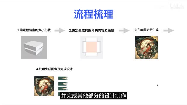 首先我们确定包装盒的大小形状,然后确定想要生成图片的内容和画幅大小。之后在m g里进行生成,再用p s a i等软件对图像进行处理,并完成其他部分的设计制作。最后,把所有设计好的内容放置在样机上渲染即可。以上就是今天视频的所有内容,我们还将不定时贩毒,欢迎大家点赞、收藏、关注设计读物,了解更多设计前沿。