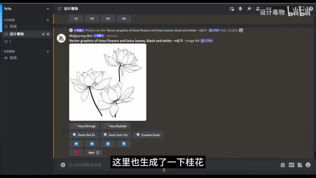 因为想方便后期抠图,就直接用了黑白配色。深沉的咒语非常简单,翻译过来就是荷花和荷叶的矢量图形,黑色和白色。这里也生成了一下桂花,给大家进行一些参考。生成之后,我们就可以用这个网站打在公屏上了,把图片变成史料。