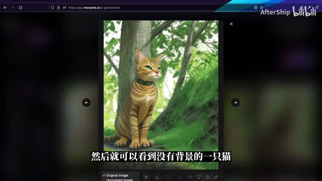 接下来这个是背景移除工具。如果我们不想要图片的背景,只是想要这只猫,我们可以用这个工具。那背景移除成功之后呢,我们可以点击左侧的下拉框,然后就可以看到没有背景的一只猫。右边这三个功能都是跟放大一点,如果一个功能它是只针对付费用户开放。所以免费用户只能用后面这几个。