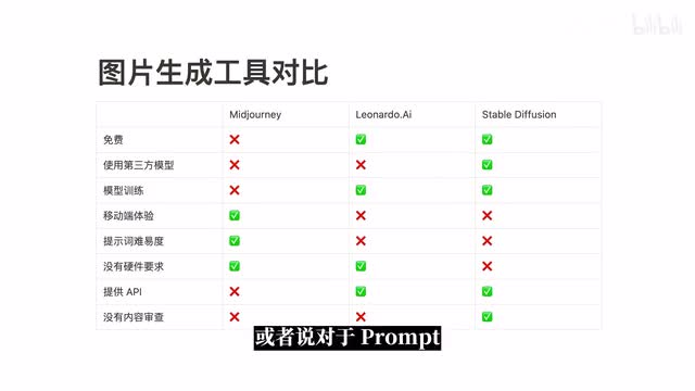 那另外就是它免费免费用户有一百五十个tok基本上也是够用的。那另外就是如果你是开发者,你想要把呃a i生成图片这种能力集成到自己的产品里面,然后它的也提供a p i,所以是一个不错的选择。但如果说你想要在移动端使用,或者说对于proud呃没有太多的研究,但是想要生成的效果还不错,也不想要去管什么模型啊什么的,那个journey肯定是最好的。如果说你本身有一台很高性能的c然后你又喜欢折腾的想要去把控很多细节,那svd diffusion肯定是最好的选择。以上就是我们今天视频的全部内容了。