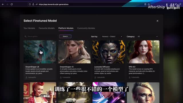 那这个时候如果说你对生成的结果不是很满意的话,我们可以尝试去换一个模型。比如说点击这里,我们就可以选择另外一个模型。leonardo本身已经训练了一些很不错的一个模型了。比如说前两个模型它是针对于人像是做了很多的优化的这一个它就是比较适合去生成一些照片。那我们拿这个jim shark v五再来试一下,ok这个时候图片就生成了。
