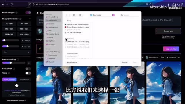 我们来试一下,这样我们就生成好的图片。可以看到说图片里面的人物的姿势就跟。我们上传的图片的当中呢,其实是保持一样。然后我们来介绍一下这个a i画板啊,a i画板在聊天呢也是一个非常强大的一个功能,我们可以从电脑上随便上传一张图片。调整到跟他那个输入框差不多的一个大小。