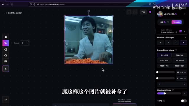然后我们可以在下面输入一些提示词。那这个时候leonardo就会帮我们补全图片空白的那些区域。你可以在右侧的编辑框里面选择你要生成多少张,那默认它会生成四个方案,你可以选择左右去选择几个你觉得不错的一个方案,那这样这个图片就被补全了。那最后我想讨论一下mu、journey、leonarda以及stability diffusion这三个应该怎么去选?首先你只是想要去尝试一下ai生成图画的能力的话,那嘹亮的我觉得是一个很不错的入门选择。首先它其实是一个云版的一个stability fusion。