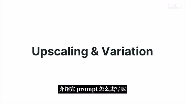 那图片的比例呢跟它的内容其实也是有一定的关联性的。比如说我们之前介绍过像四比三或者是三比四这样的会更加适合于人像。那十六比九呢可能会更加会适合像风景这样的图片。介绍完pro t怎么去写呢?我们再介绍my journey最常用的两个功能,一个是upscaling,它意思是去提升某一张图片的分辨率。variation的意思就是以某一张图片为基础,然后去生成几张跟它很像,但是又有一点点不一样的变体。