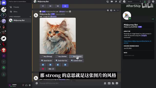 这四张呢跟原来的风格整体上都是非常接近的,但是在细节上会有很多的不同。放大之后的图片呢,同样也是可以来生成变体的那这个时候去生成变体的时候会有两个选项,一个是very strong,一个是very subtle。stronger的意思就是这张图片的风格可能会发生一些比较大的变化。那subtle呢就是它只有一些细微上的一些变动。这时候我们看到的就是subtle生成的结果,本质上它的变化就不是特别大。