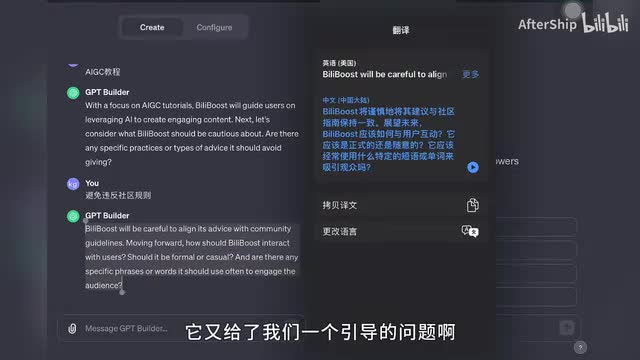 好,他让我们来完善这个a p p的一个作用和目标。问我们在建立这个账户的时候,应该优先考虑哪些内容?呃,我觉得现在的a i g c很火嘛,就是用a i来做视频很火。所以我就给他一个思路吧,就比如说是a i g c的教程,加入一些怎么用a i g c去帮大家做视频的一些问题和引导,给他一个关键词,看他能不能理解o k他现在告诉我们,他会专注a i g c这个板块,然后指导用户用a i g c去创建一些内容。