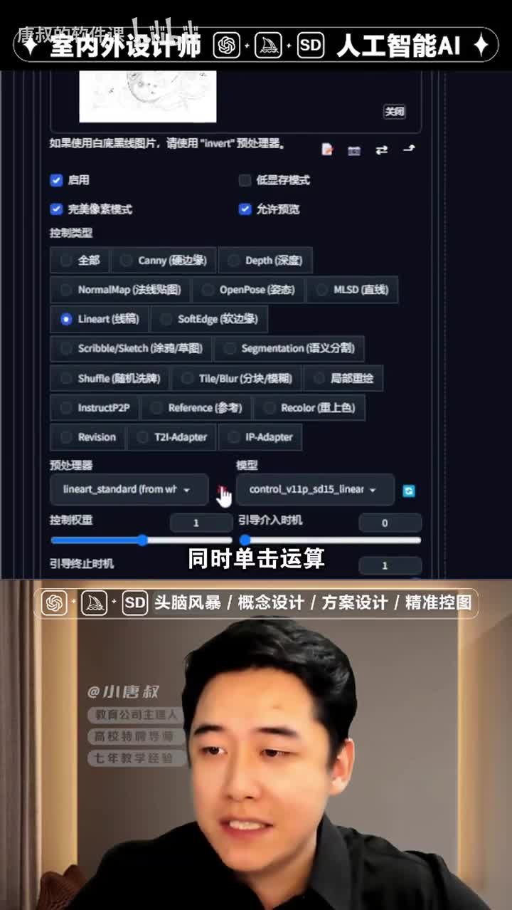 我们选择线稿的方式,同时呢单击运算啊,这个时候呢它会出现一个黑底白线啊,说明你的图像已经被a i所识别。