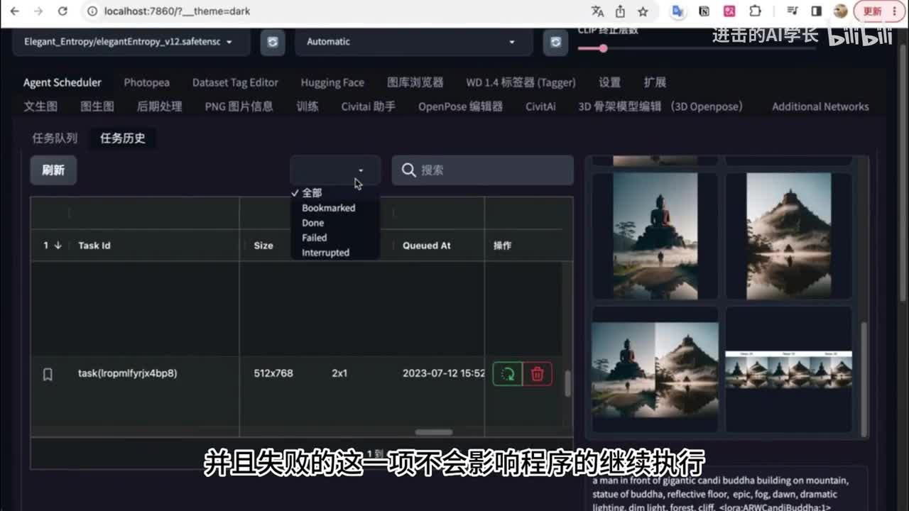 如果某条命令执行失败,比如报显存了,它也会在这里列出来。并且失败的这一项不会影响程序的继续执行。单条任务执行失败后,他会接着继续下一条任务。在提高工作效率方面,这个插件非常实用。