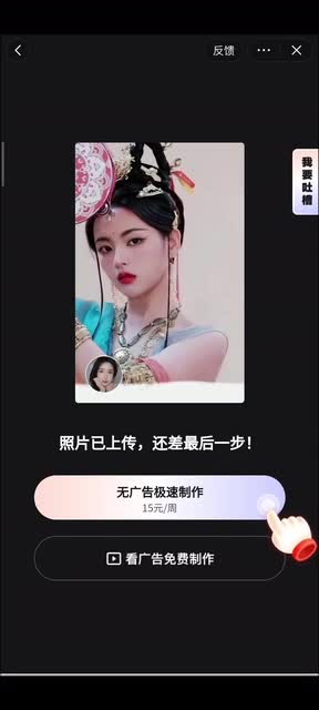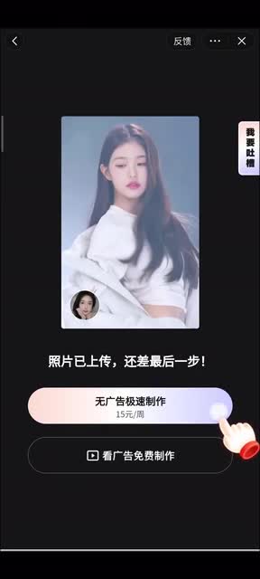 尽量清晰美观,然后上传照片,点击看广告,免费制作。