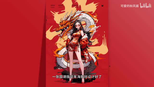 一张国潮版龙年海报就设计好了。