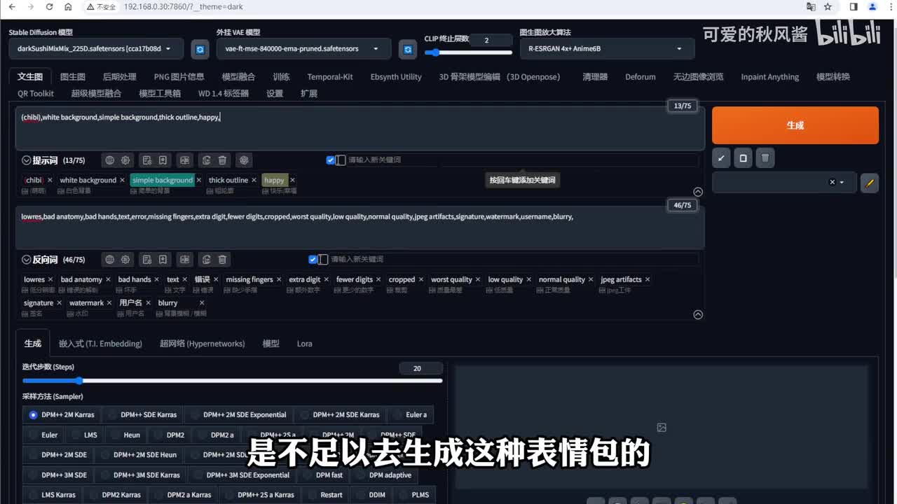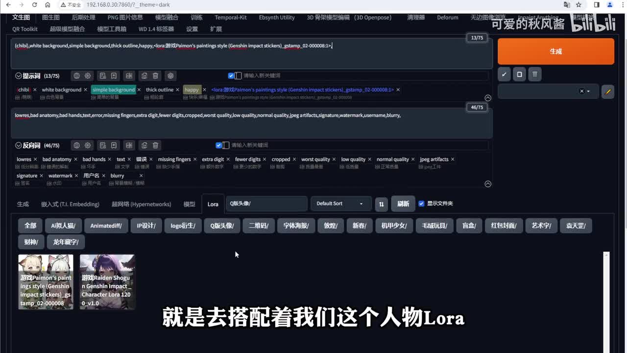 当然我们仅仅这样去书写的话,是不足以去生成这种表情包的。我们必须要去搭配着这个laura来进行使用。
