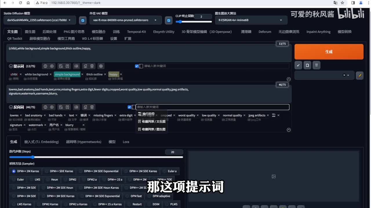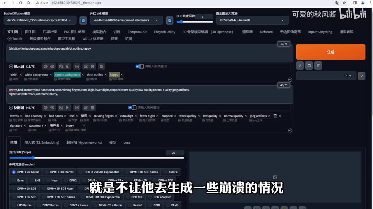 那反向提示词就是不让他去生成一些崩坏的情况。烦恼。