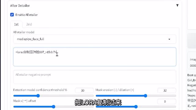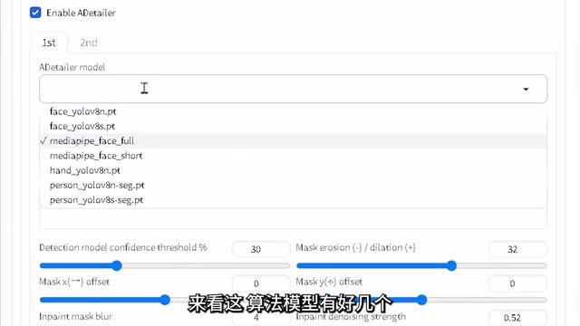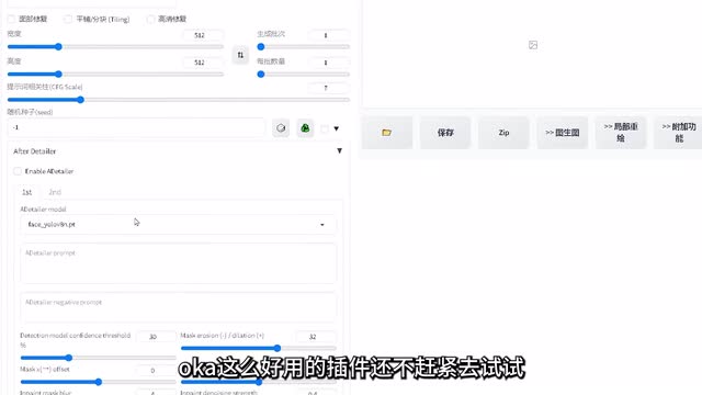 只因我用了这个面部修复插件ur detailed,这个插件功能非常强大,能自动的检测脸部,然后单独的抠出来修改。