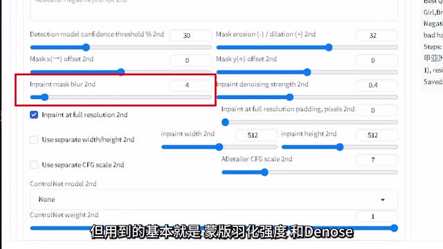 那么换衣服调细节应该就很容易的实现了,而且可以双通道联合,一个多了换衣服,一个多了换脸,实现各种的cos a下面还有很多的参数,选用的基本就是蒙版的羽化强度,在第段s这个类似组装图的重绘强度,想要把脸画的更像一点,就稍微的调高零点六左右就是它的极限了。