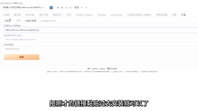 进到github找到这个add tail的项目,然后点这个复制地址,然后web u i扩展,从网址安装,把刚才的链接粘贴过来,然后点安装。