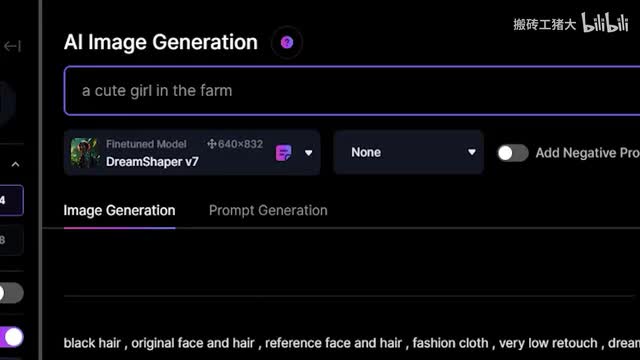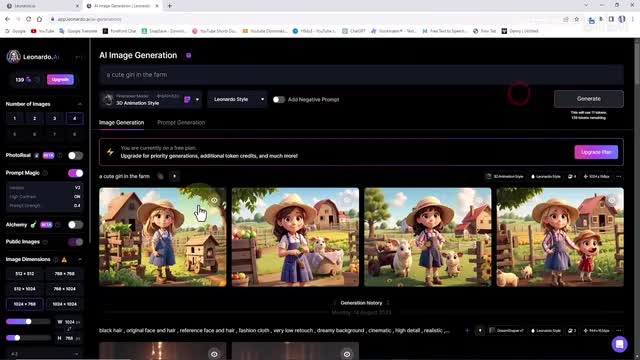 然后单击生成按钮,生成三d动画风格的可爱女孩的图像。在每个图像的底部。查看有一个按钮可以下载图像。我们稍微修改一下文本框中的提示文本。