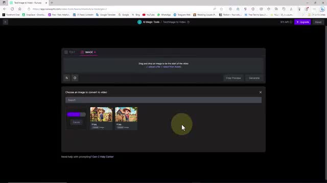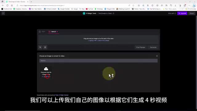 在此页面上。我们选择真二选项或图像文本到视频服务。我们可以上传我们自己的图像,以根据它们生成四秒视频。我选择并上传所需的图像,现在我单击生成选项。