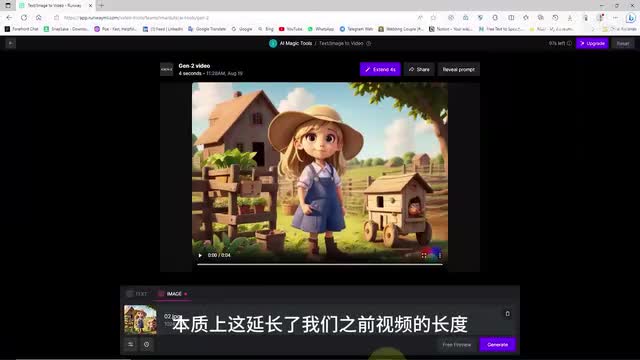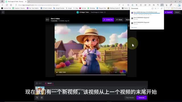 现在我们有一个代表该视频最后一帧的新图像动画。我们可以在真二中再次上传相同的图像,以基于此帧生成新的动画。本质上这延长了我们之前视频的长度。现在让我们回到runway网站,我们在runway中输入战二功能,现在我选择继续生成。