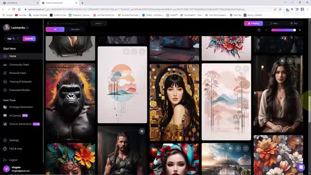 注册完成后来到leonardo的专业面板。所有这些图像都是使用免费计划生成的。每个用户目前每天有一百五十个积分用于生成图像。我单击上部左侧菜单中的ai图像生成选项。